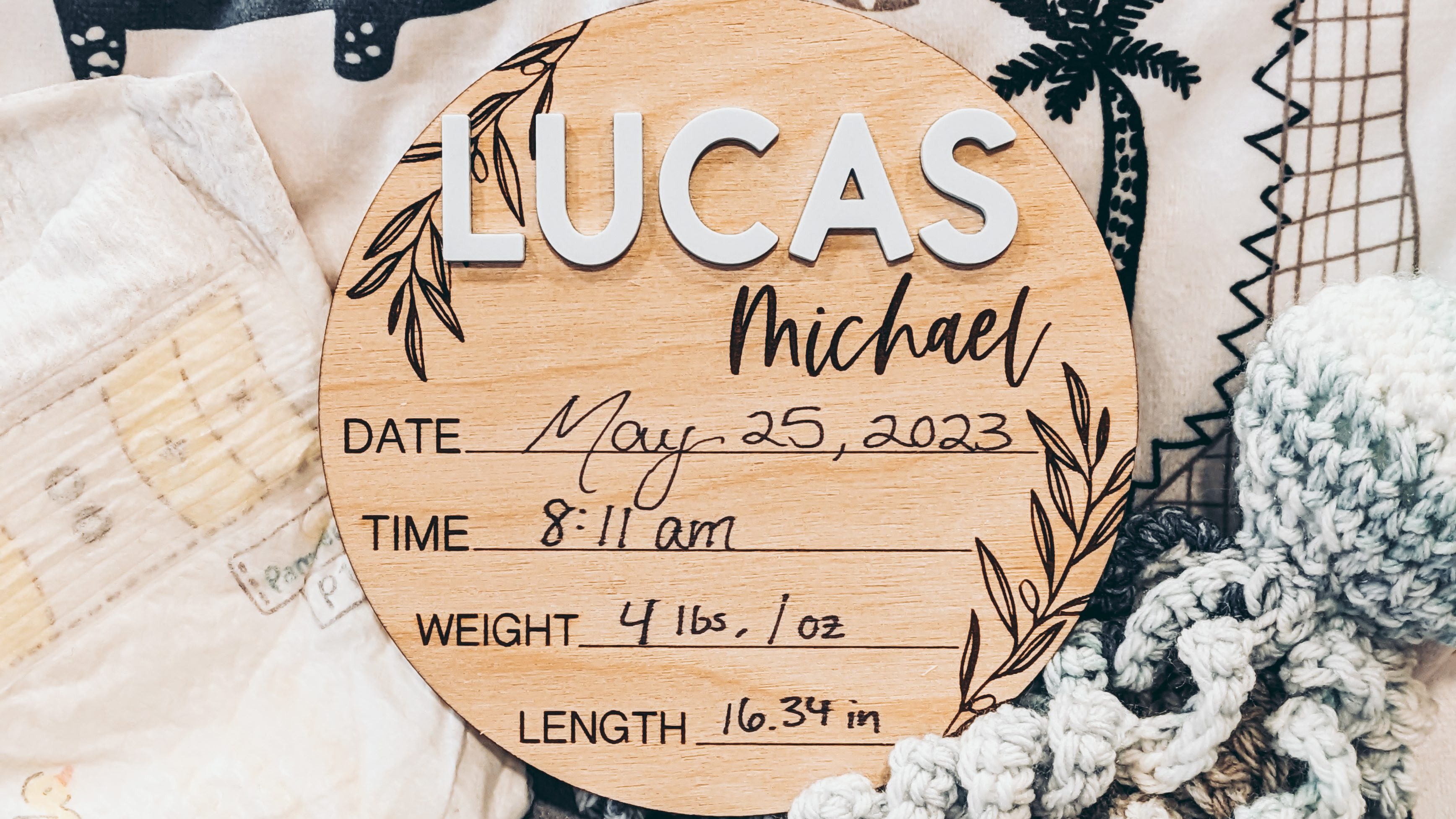 Lucas was born on May 25th, 2023 at 8:11 in the morning. He weighed 4lbs and 1 ounce and was 16.34 inches long. Born at 30 week and 6 days gestation.